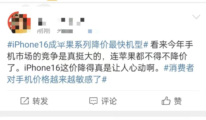 iPhone降价的产品主要集中在iPhone 14、iPhone 15及去年9月最新推出的iPhone 16系列。