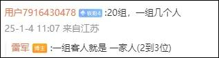 对此,雷军回复称:“一组客人就是一家人(2到3位)。”