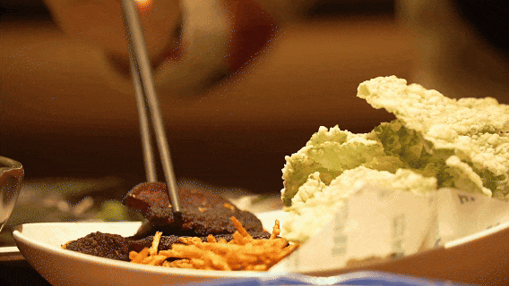 黄牛肉夹着薄荷叶,裹上蘸水!