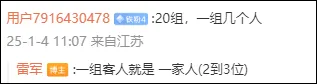 对此,雷军回复称:“一组客人就是一家人(2到3位)。”