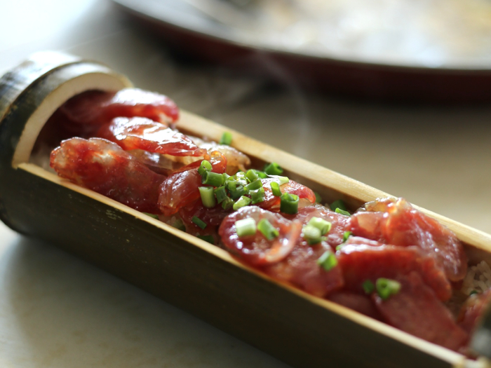 竹筒腊味饭。