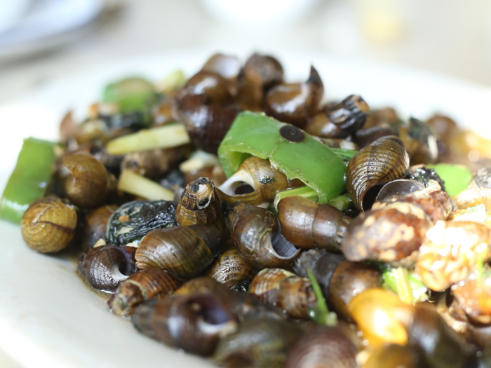 紫苏炒山坑螺。