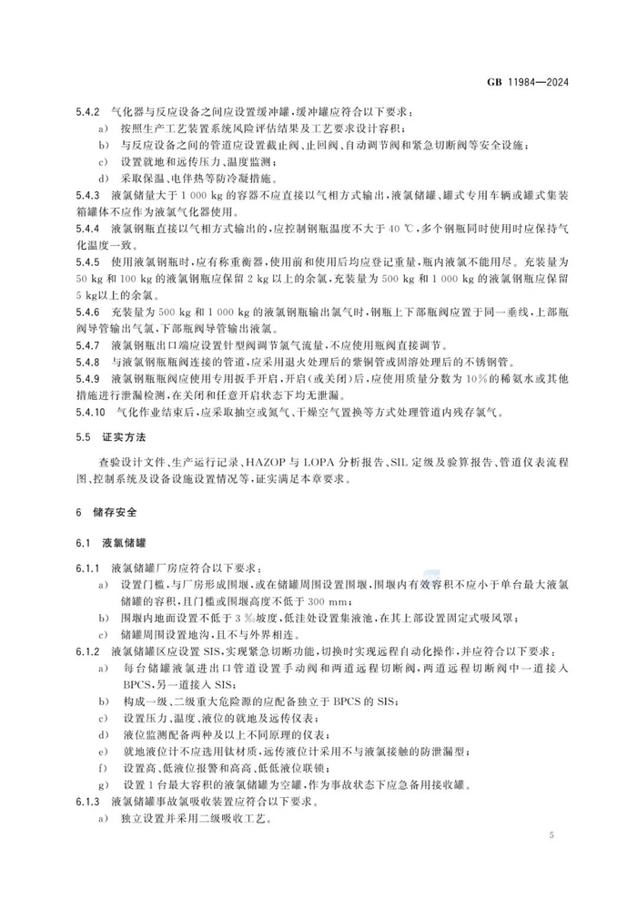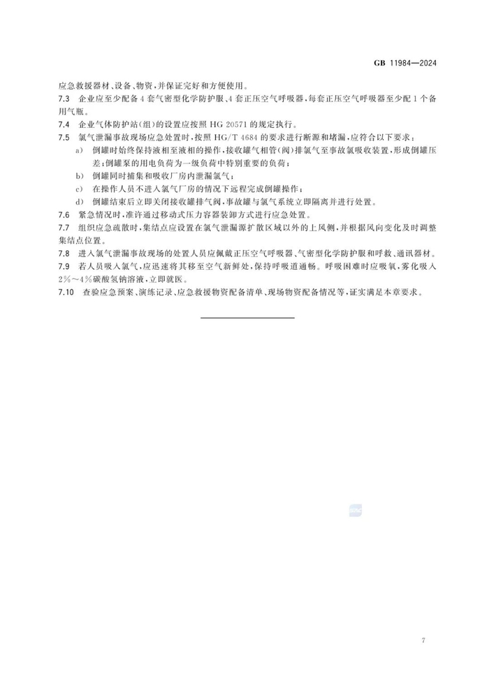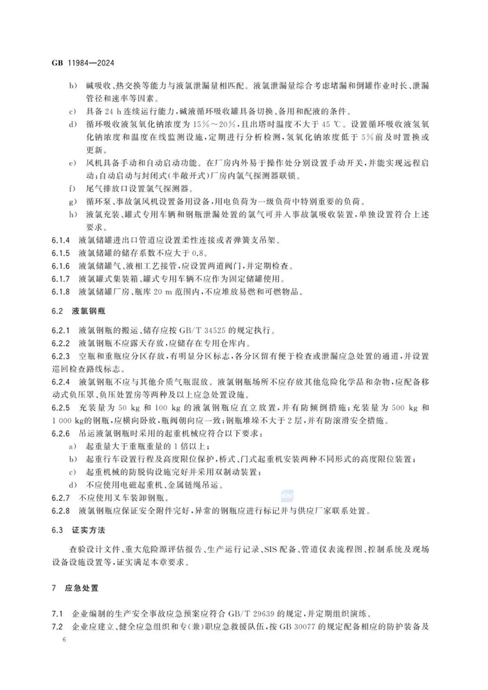 为有效管控化工企业氯气生产、储存重大安全风险,防范遏制重特大事故,应急管理部组织修订的强制性国家标准《化工企业氯气安全技术规范》(GB 11984-2024)于近期发布,自2025年8月1日起实施。