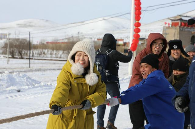 上午10时许,雪地拔河准时开始,市民、游客自发组成两支代表队出场,参赛者们紧紧握住绳子的一端,双脚发力,身体后仰,全神贯注,斗志昂扬,双方你不让我我不让你,在雪场上展开一场激烈的拉锯战。场下围观的游客变身啦啦队加油助威,呐喊声此起彼伏。由于雪地摩擦力减少,趣味性和未知性也大大增加,现场一派欢腾景象。