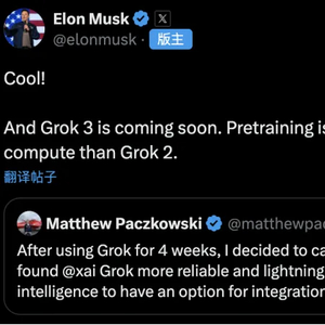 Grok 3被视作OpenAI最新的旗舰模型o3的竞品。马斯克此前曾表示:“Grok 3应该是世界上最强大的AI。”