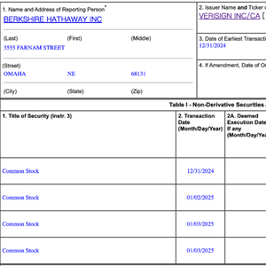 伯克希尔向美国证券交易委员会(SEC)最新提交的文件显示,其在2024年12月31日至2025年1月3日买入了约2万股威瑞信(VeriSign)普通股,总金额约410万美元,约合人民币3000万元。