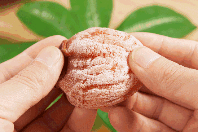 所以市面上很多柿饼会“人工上霜”,用淀粉,甚至滑石粉等添加剂来冒充柿霜。