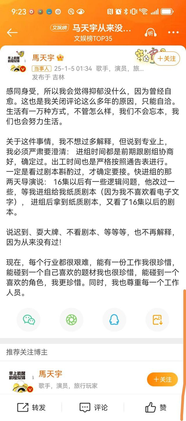 95后演员整顿内娱?公司解约剧组发声马天宇否认