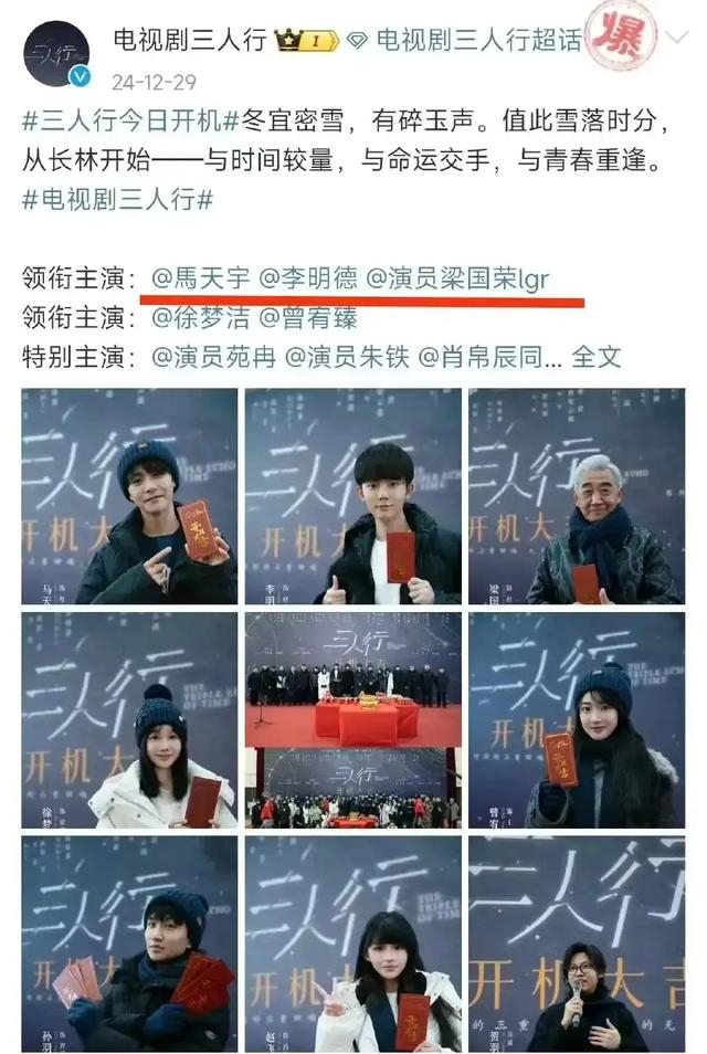 据悉,青春奇幻剧《三人行》于2024年12月29日在长春开机,该剧由贺羽端担任导演,马天宇、李明德、梁国荣、徐梦洁等主演。其中,马天宇是一番,李明德是二番,《三人行》在长春取景拍摄,集中展现长春当代生活的底蕴和文化传统的血脉。剧集将用浪漫、奇幻、有悬念感和有亲和力的视角,留下独属于雪乡的浪漫。马天宇就在李明德爆料当日,还在微博发了和导演工作的日常,以及发vlog,内容是他在拍摄地长春的所见所闻。
