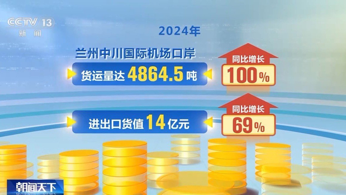 “钢铁驼队”高效发运的同时,甘肃“空中丝路”网络持续加密。兰州海关支持“兰州—莫斯科”首条全货运洲际航线和“兰州—阿拉木图”国际货运航线开通,截至目前甘肃共开通国际客货运航线48条。2024年,兰州中川国际机场口岸货运量达4864.5吨,进出口货值14亿元,分别同比增长100%和69%。