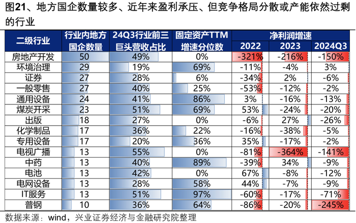 当前一些行业产能过剩压力较大,通过推动兼并重组,提升行业集中度,是化解供给过剩、整治“内卷式”竞争的重要途径。关注其中地方国企占比较高、近年来产能过剩、盈利承压、竞争格局有待进一步优化的行业龙头,主要包括地产、环保、券商、新能源、煤炭、化工、钢铁等。通过并购重组,加速行业出清和格局优化,增强龙头公司的竞争优势。