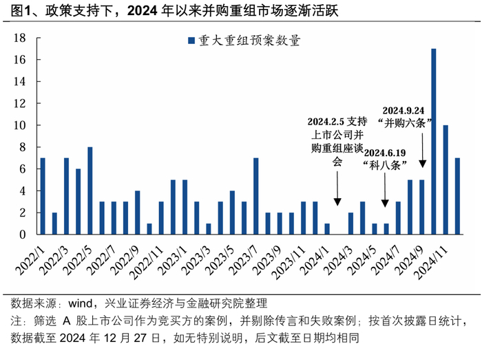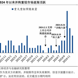 2024年以来,并购重组作为优化资源配置、激发市场活力的重要途径,相关政策不断完善、优化。从年初证监会召开支持并购重组的座谈会,到4月国务院发布资本市场新“国九条”进一步鼓励并购重组,再到近期证监会发布的“科创板八条”、“并购十六条”,国家高度重视并购重组对于高质量发展的重要作用,多项并举活跃并购重组市场。