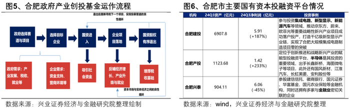 合肥模式的核心,即选取符合其发展导向的企业,通过政府主导成立产业创投基金,收购企业股权,引入优质项目落地,从而反哺经济增长、就业和产业升级。在实现资产增值后,国资股权有序退出,增厚税收基础的同时,继续投入下一个项目,形成资本市场与实体经济之间的良性循环。合肥市目前已经形成三个专化的国有资本投融资平台,有效地发挥了国有资金的杠杆作用,引入京东方、创立合肥长鑫、纾困蔚来汽车,成功引进集成电路、新兴显示、新能源汽车等多个产业集群,助力经济转型升级。
