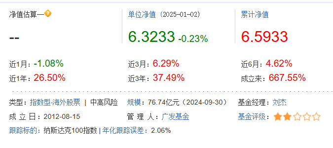 1月4日,广发纳斯达克 100 交易型开放式指数证券投资基金联接基金(QDII)发布公告称: