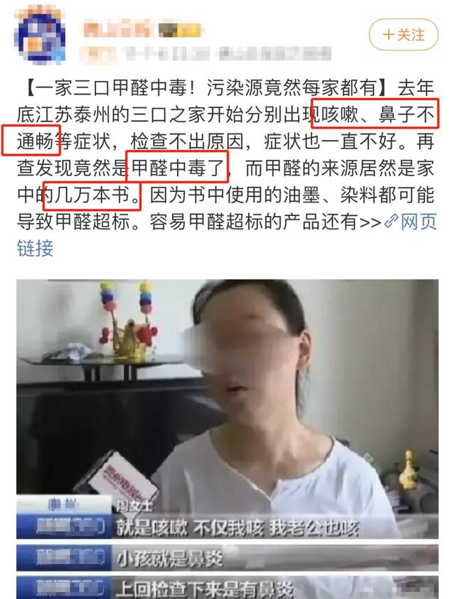 此前有新闻报道,江苏泰州的三口之家长期受咳嗽、鼻塞等问题困扰,后续做了进一步检查才发现,是甲醛中毒!而之后的调查显示,罪魁祸首,正是家中堆满书柜的图书。