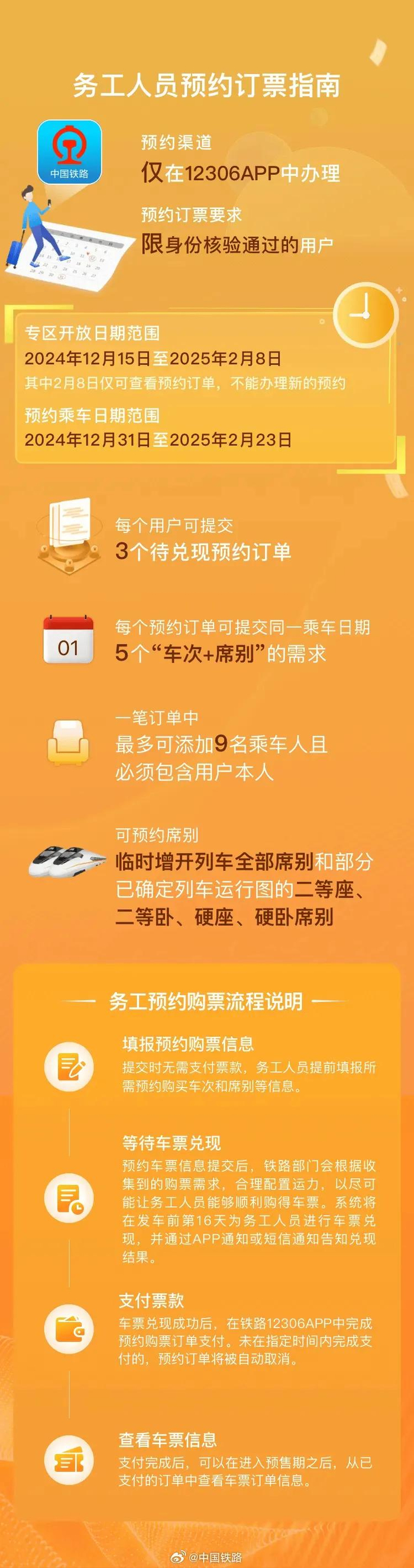 今天是2025年1月5日,旅客可通过铁路12306网站(含手机客户端)购买2025年1月19日的火车票。今年春运购票,记住这2个关键时间点: