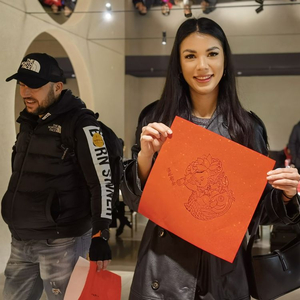 2024年12月31日晚,斯洛伐克游客在“上海新春第一游”体验非遗拓印。新华社记者 陈爱平 摄