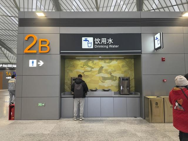 值得一提的是,每一个检票口都设置了饮水处,距离检票闸机距离近且标识醒目。每两个检票口之间均设有厕所,让旅客候车时能够安心如厕和取水,不同走过漫长的通道。此外,焕新后的上海南站,其空调设施和广播音效都较此前有了明显提升,在候车大厅每个角落都能清晰听到站台广播。