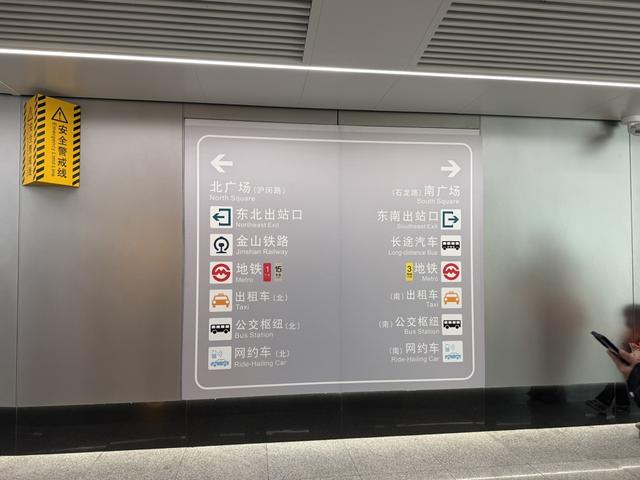 记者改签了12时03分出发的C3020次列车后,中午12时57分准点抵达可上海南站。根据现场导视乘坐电梯抵达地下一层达到层后,迎面而来的就是一幅巨型导视牌。乘坐同班次列车从南京南上车的王小姐告诉记者,上海南站焕新后的导视牌总体比较清晰,旅客要去的地方基本都有所覆盖。“建议导视牌旁边增加一幅南站的站台图,圆形的车站布局跟传统的‘盒子’车站不太一样,有车站地图配合导视系统会更加清晰。”