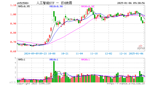 1月6日,人工智能ETF(515980)开盘涨0.11%,报0.903元。人工智能ETF(515980)重仓股方面,中际旭创开盘涨1.52%,新易盛涨1.51%,科大讯飞跌0.16%,中科曙光跌1.00%,金山办公涨0.00%,韦尔股份涨0.39%,寒武纪涨0.76%,海康威视涨0.03%,德赛西威涨0.00%,澜起科技跌0.32%。