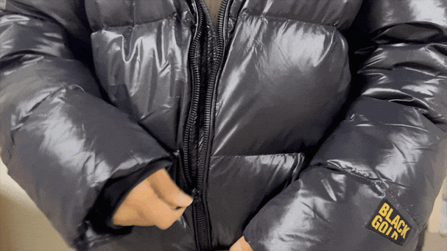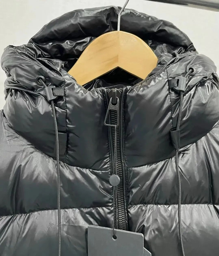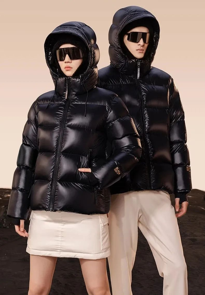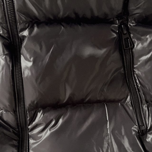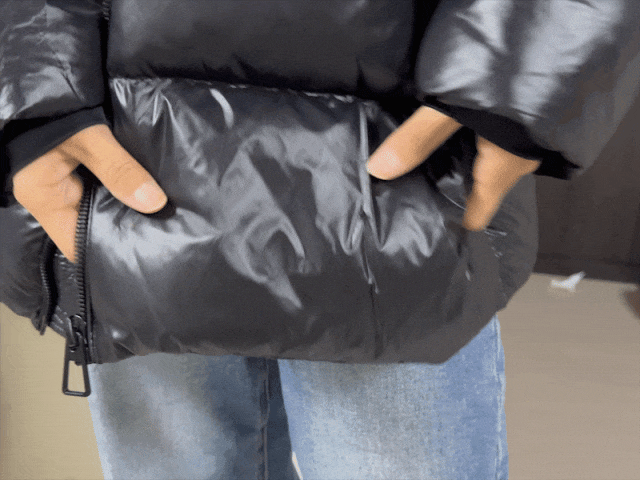 直筒版型不显臃肿,亮面材质打破黑色沉闷感,穿上后时尚感爆棚~