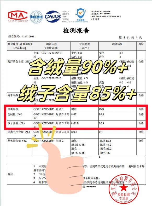 它的鹅绒含绒量90%+,质量做工什么的,我已经验过货了,闭眼入的程度,可以放心购买!