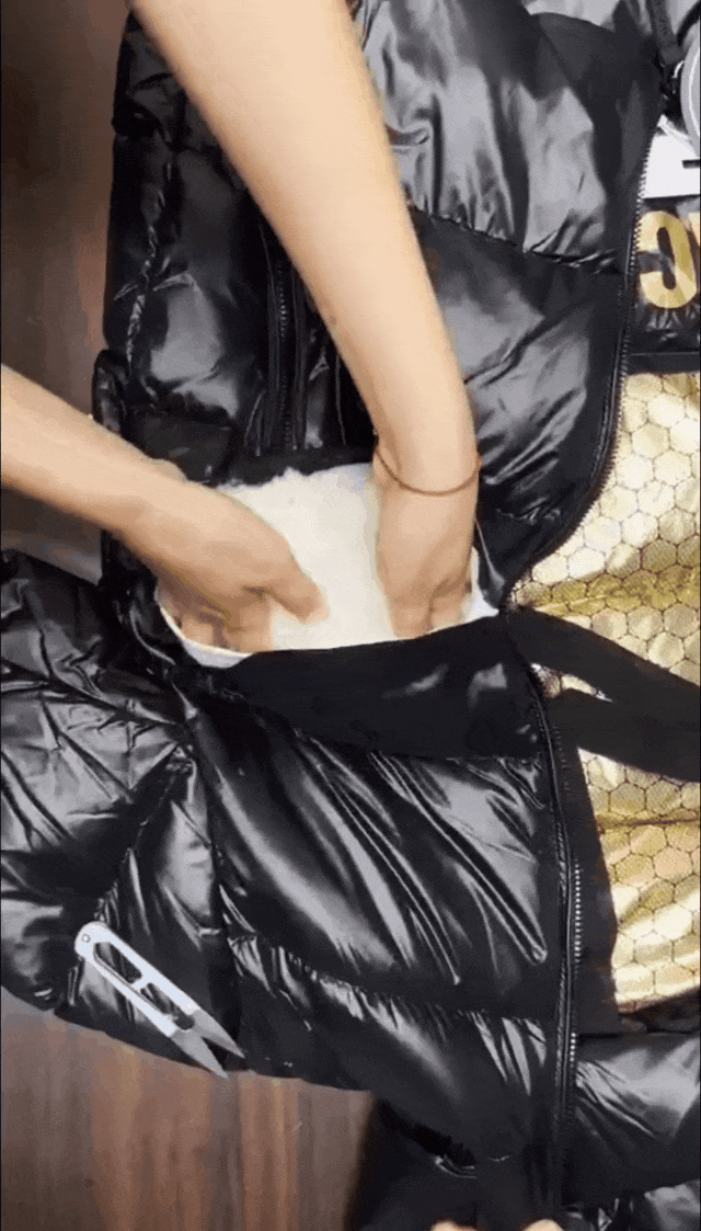 除了内里填充物,后背还做了火山岩自热暖皮+烫金工艺锁热涂层定制面料~