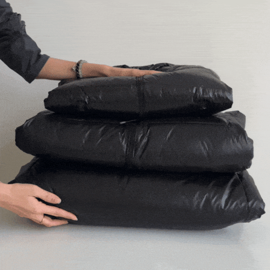 它的包装也超级用心,成人款过于厚实充绒量一般袋子很难装得下,厂家直接升级做了一个无纺布包装!