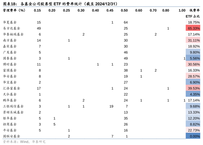 产品费率:半数宽基ETF管理费降至0.15%,易方达基金低费率ETF数量多
