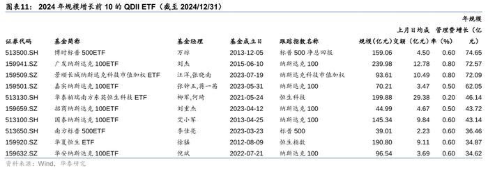 境内另类投资型ETF主要是商品型ETF,其中以黄金ETF为主。2024年无新增商品ETF,该类ETF规模从2023年底的306亿提升至757亿元,其中华安黄金ETF全年规模增长为147亿元,博时、易方达、国泰黄金ETF规模亦有大幅增长。