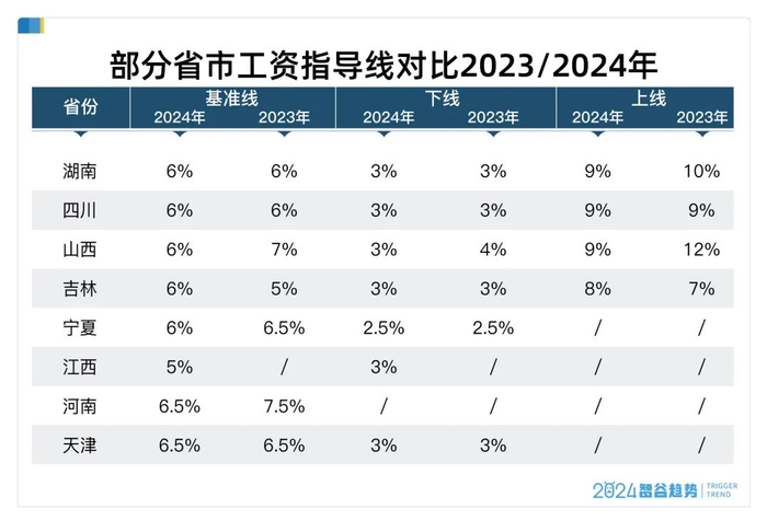 更显著的动作是,不少省份和城市的企业工资指导线也被进一步提高。