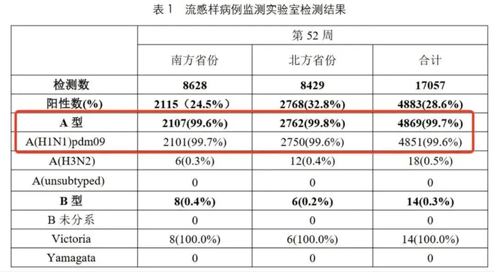 可见,无论是门急诊病例还是住院严重病例中,流感都是最主要的病原体之一。此外,流感病毒阳性率正快速上升,其中99%以上为甲流,流行株以A(H1N1)pdm09亚型为主。