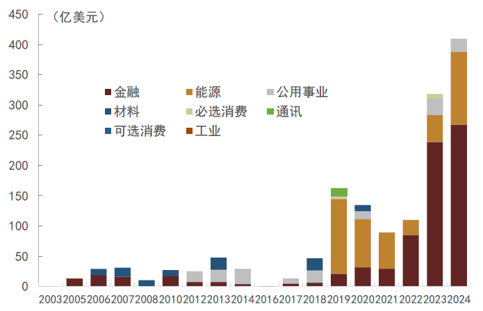 中国在沙特发行美元主权债,标志着沙中双方在债券市场领域的合作拉开序幕。根据中国财政部[12]信息,2024年11月13日财政部代表中央政府在沙特阿拉伯王国首都利雅得成功簿记发行了20亿美元主权债券。此次中方在沙特发行主权债,是支持推进高水平对外开放的重要举措,为国际市场投资中国、了解中国提供了重要通路。进一步巩固了境外主权债券常态化发行机制,完善了美元主权债券收益率曲线,为国际投资者提供长期稳健的中国资产,同时为中资发行人境外美元融资提供定价基准,有效支持了中资企业海外融资。本次是中国首次在沙特利雅得发行美元债券,丰富了中沙全面战略伙伴关系内涵,有助于吸引沙特、海合会国家投资者增配中国主权债券,同时加强与沙特资本市场合作,支持沙特金融市场的国际化进程,进一步深化中沙在投资、金融等领域的互利合作。