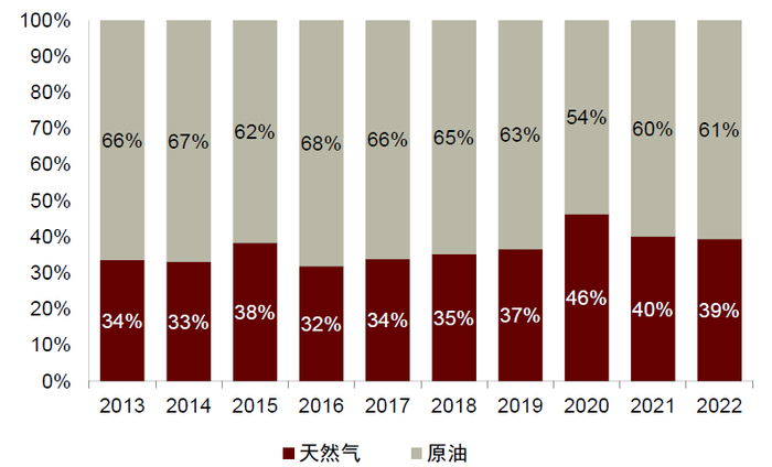 图表7:沙特能源结构中原油、天然气占比(2022)