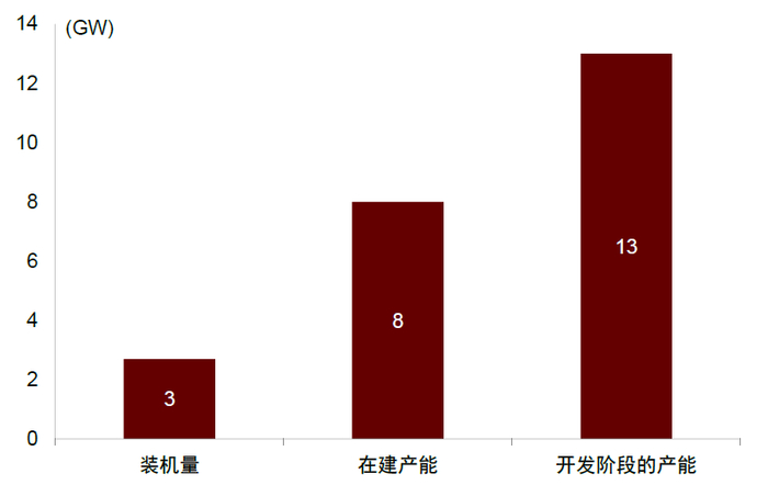 图表6:新能源装机、在建及开发阶段产能(2023)