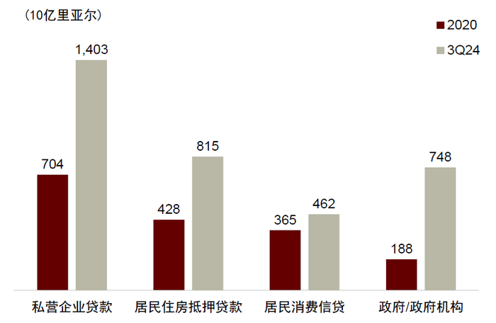 私营部门杠杆率仍远低于世界平均水平。截至2023年末,银行业对私营部门贷款总额2.548万亿里亚尔,私营部门总杠杆率63%(对私营部门的信贷总额占名义GDP的百分比),低于大多数主要经济体,并低于世界均值70%。