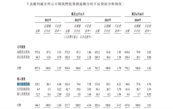 其中,个人贷款领域的问题尤为突出,特别是个人商业贷款的不良率,在2021-2023年间分别达到了4.46%、7.58%和6.21%。到了2024年上半年,这一数字虽然有所回落至4.76%,但仍处于较高水平,作为对比,同期泸州银行个人经营贷款不良率为4.25%,成都银行个人经营贷款不良率更是低至0.92%。