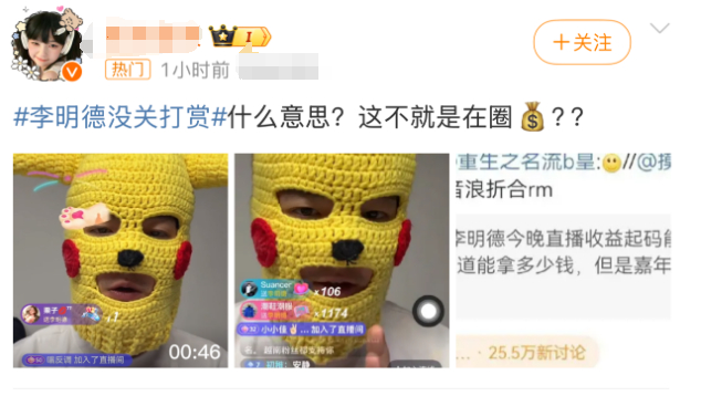 而直至1月5日晚间,李明德在抖音进行直播,全程未关闭打赏,网友狂刷礼物。于是有人开始质疑其要当网红圈钱,怀疑大家只是其play的一环,并斥责其连续两天鸡犬不宁的闹剧。下播后李明博又发微博表示,“我活该穷是么”,并发话《三人行》剧组工作人员,如果剧组不给工资,“你们找我,我来给”。