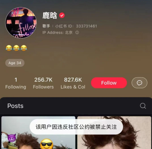 目前,鹿晗个人微博、小红书、抖音均已无法关注,部分平台显示理由为“该用户违反法律法规”。