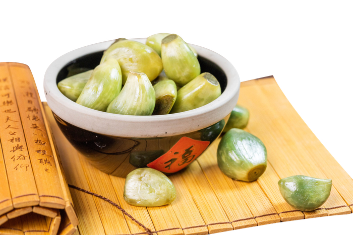 腊八蒜通常是指用醋腌制的蒜,成品颜色翠绿,口味偏酸、微辣。因多在农历十二月初八(腊月初八)进行腌制,故称“腊八蒜”。