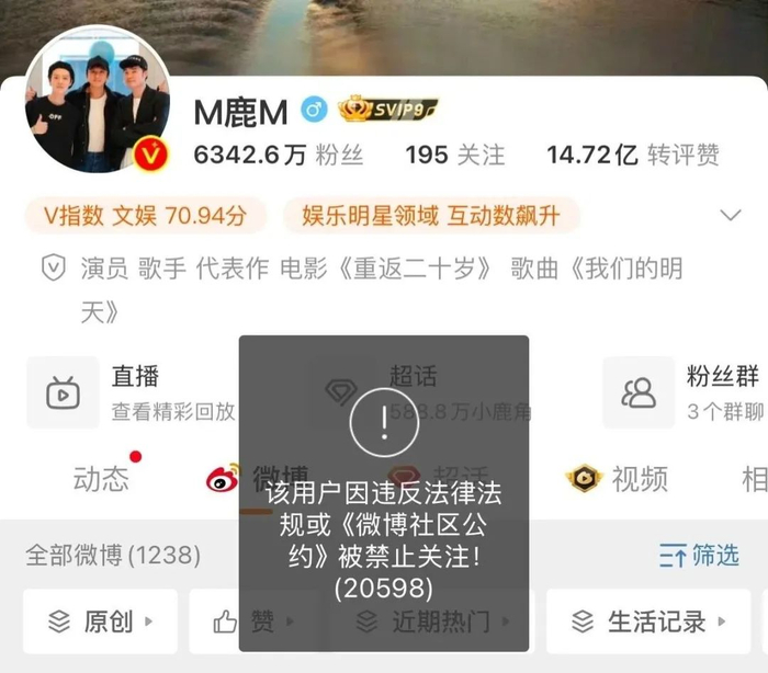 热搜爆了!鹿晗社交平台被“禁止关注”,刚刚紧急道歉!曾喊话“赶紧把我封了……”