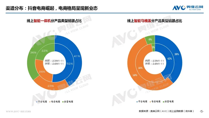奥维云网(AVC)线上推总数据显示,2024年1-11月智能坐便器线上零售额为51亿元,同比下滑20.5%;零售量为228万台,同比下滑20.0%。