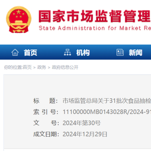 31批次食品抽检不合格情况的通告