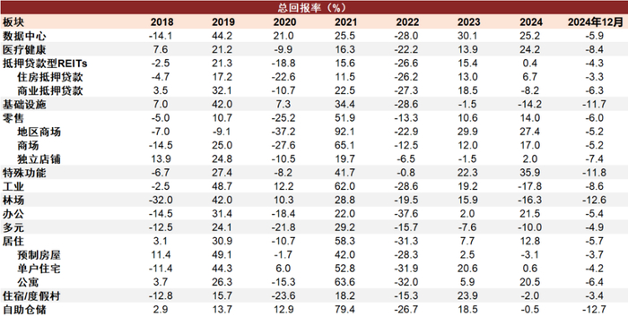 注:1)2018-2024年数据为年度总回报率,2024年12月数据为月度总回报率;2)数据截至2024年12月31日