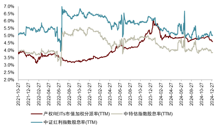 图表14:产权REITs分派率(TTM)与股指股息率(TTM)对比