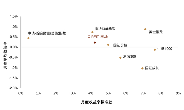 图表11:C-REITs市场及其他大类资产风险收益对比