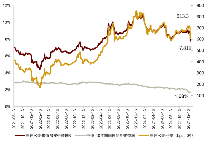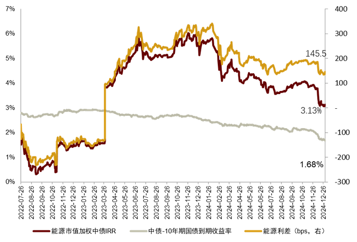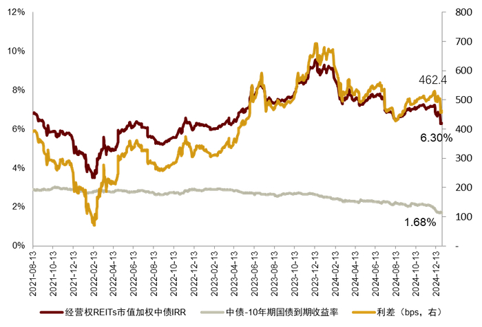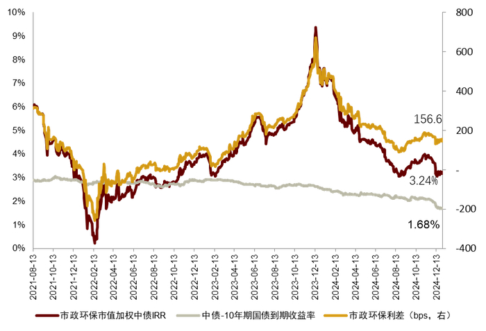 注:1)数据截至2024年12月31日;2)中债IRR数据起始日为2021年8月13日