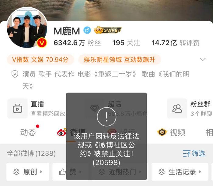鹿晗多平台账号被禁止关注,紧急道歉!曾喊话“赶紧把我封了”!代言多个知名品牌…