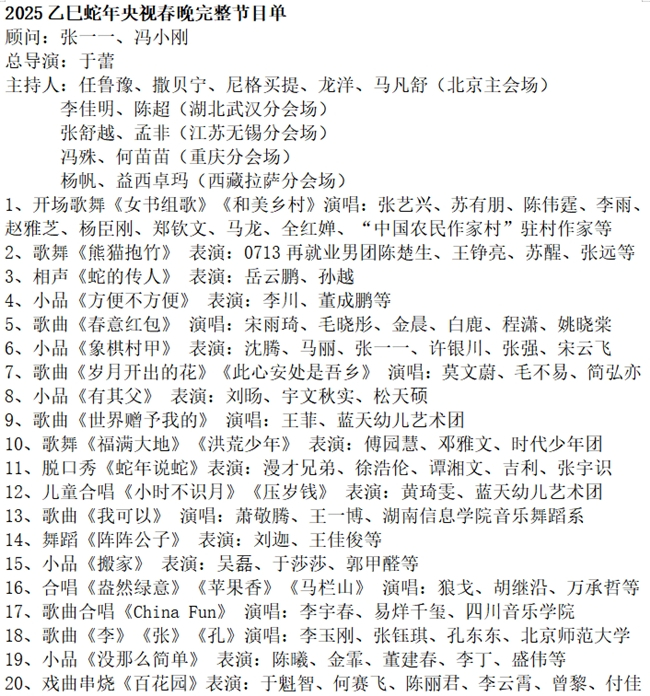通过蛇年春晚的首次彩排路透,“犹抱琵琶半遮面,千呼万唤始出来”的2025蛇年春晚节目单也基本浮出水面: