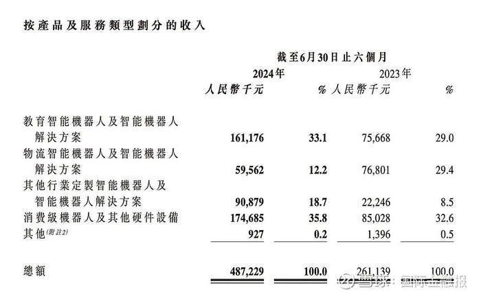 而此前优必选主要营收来源的物流智能机器人上半年营收0.60亿元,同比下降22.4%,营收占比也降至12.2%;其他行业定制智能机器人营收占比则快速上升至18.7%。